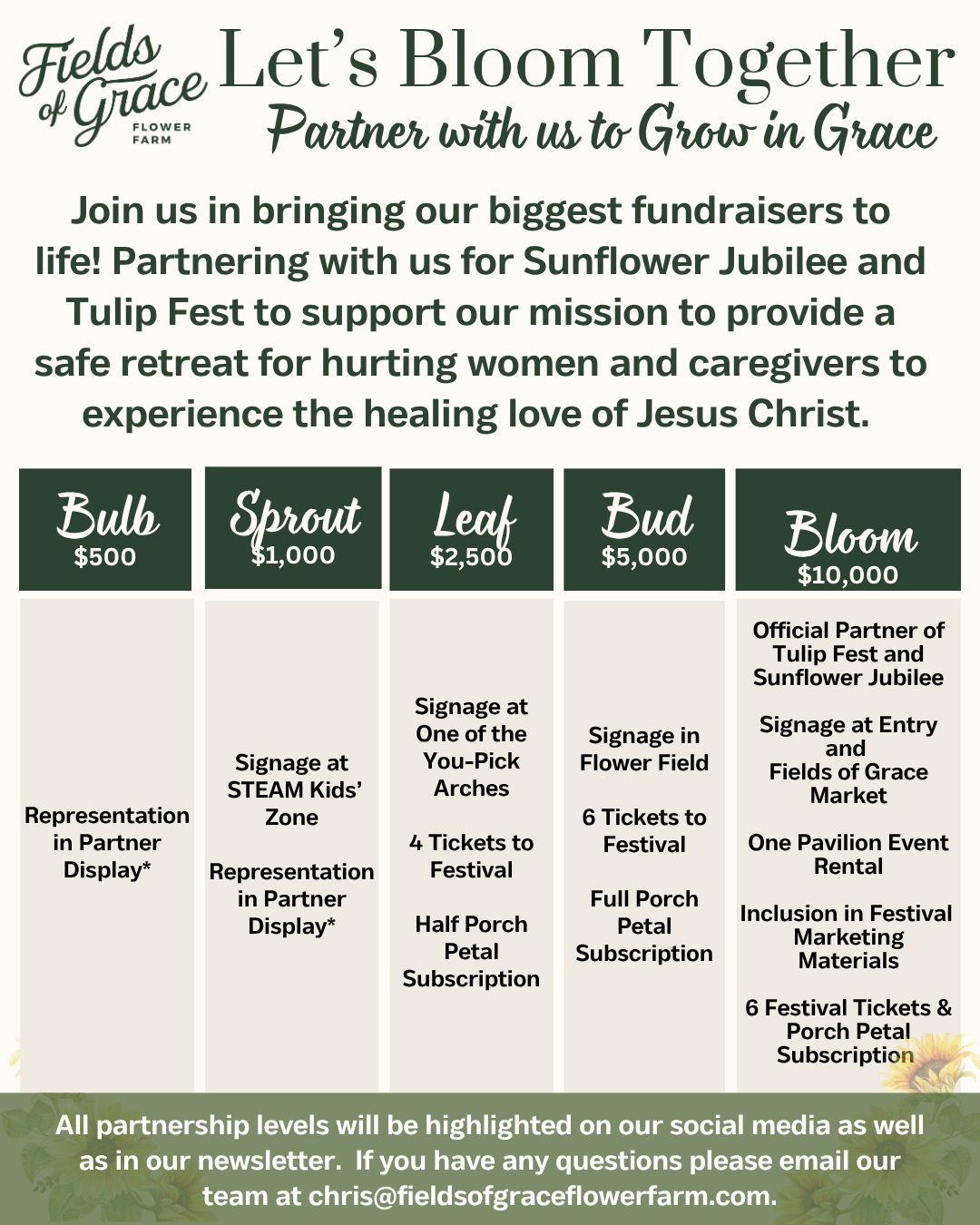 Below is a graphic detailing the levels of sponsorship to become a Sunflower Jubilee Sponsor.